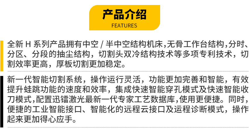 激光切割技術的逐漸普及,使其應用領域得到不斷拓展和加深。市場對超厚板穩定加工、無煙無塵、高效切割以及服務質量提出了更高的要求。迅鐳激光繼往開來、永續創新,始終位于“高功率與智能化”激光切割技術領域制高點。第8代激光切割裝備擁有10大核心優勢,助力客戶降本增效,樹行業高端典范。